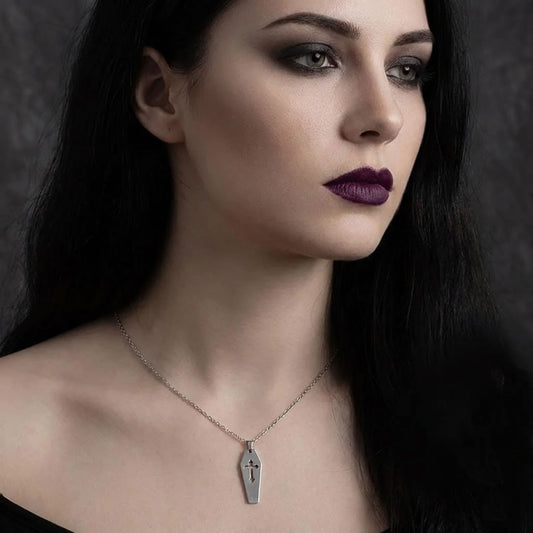 Crypt Gothic Cut-Out Cross Coffin Pendant