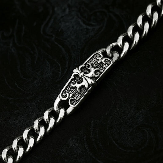 Stainless Steel Fleur-De-Lis Chunky Curb Chain Bracelet