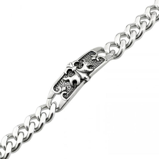 Stainless Steel Fleur-De-Lis Chunky Curb Chain Bracelet