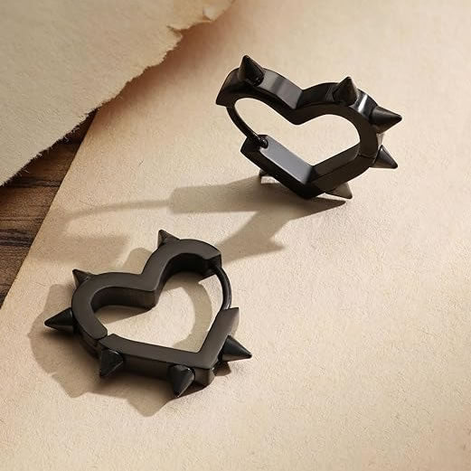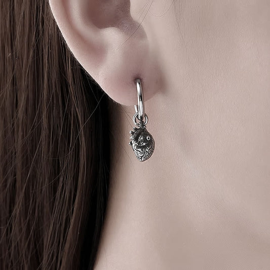 Stainless Steel Anatomical Heart Hoop Drop Earrings