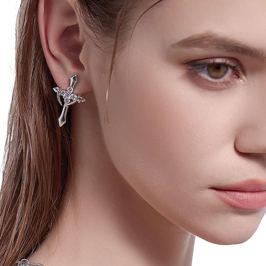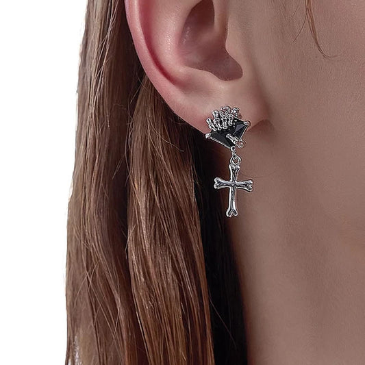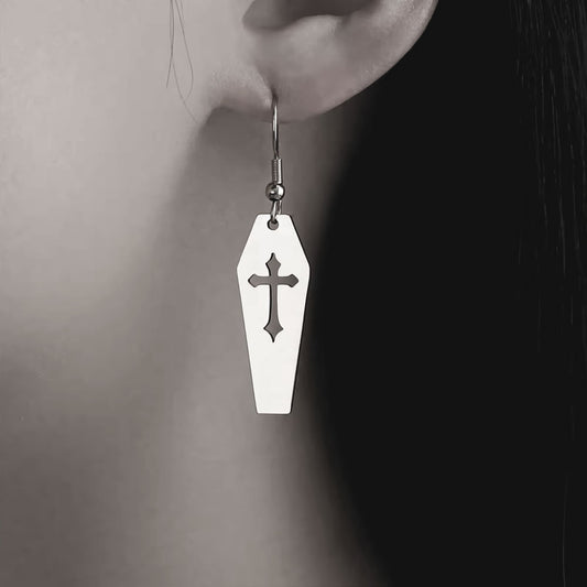 Stainless Steel Cut-Out Cross Coffin Drop Earrings