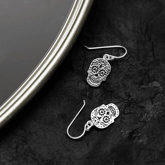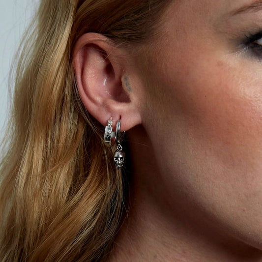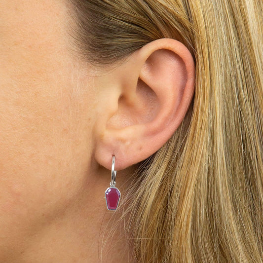 Sterling Silver Red Coffin Charm Hoop Earrings