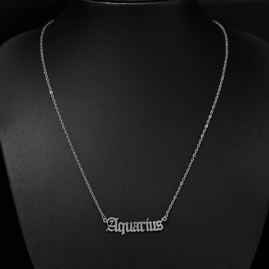 Gothic Font Aquarius Zodiac Necklace