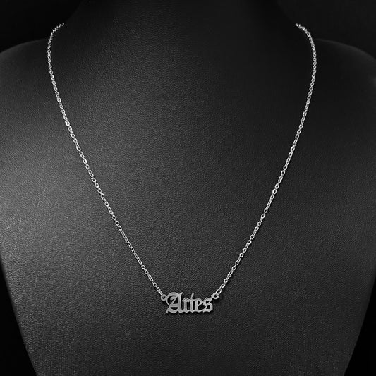 Gothic Font Aries Zodiac Necklace