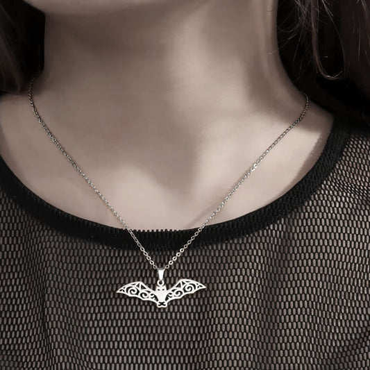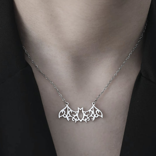 Flying Bat Filigree Cut-Out Necklace