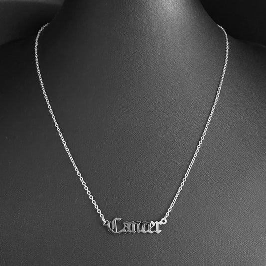 Gothic Font Cancer Zodiac Necklace