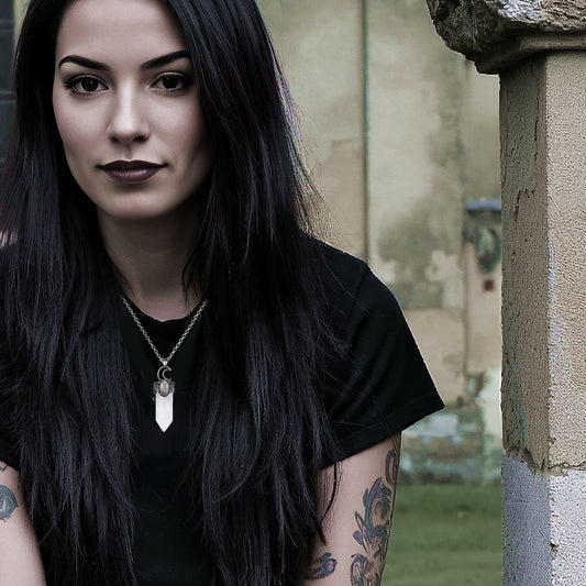 Amethyst Skull Moon Crystal Point Necklace