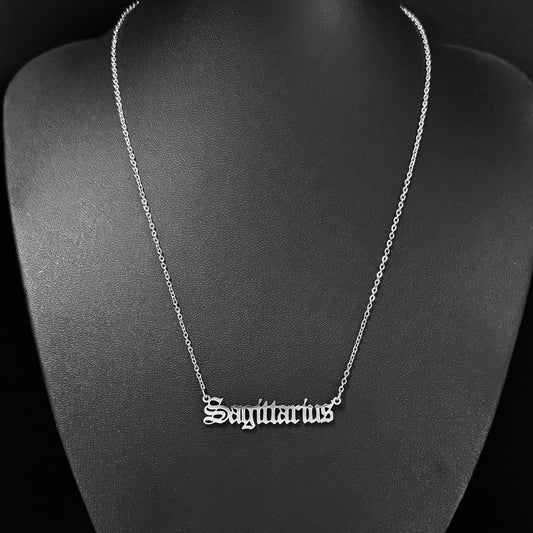 Gothic Font Sagittarius Zodiac Necklace
