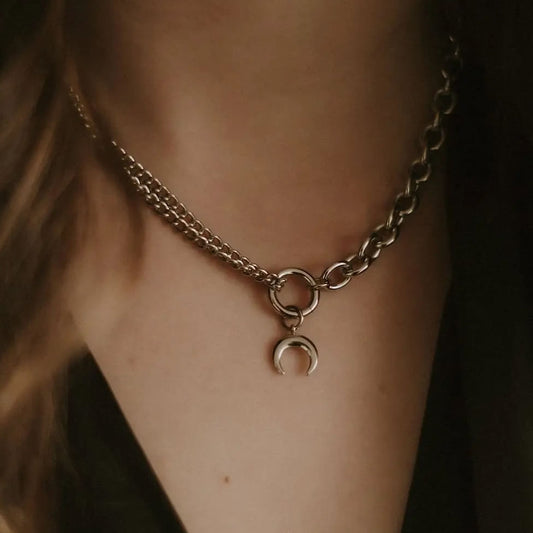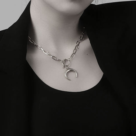 Silver Rainbow Moonstone Triple Moon Wolf Pendant