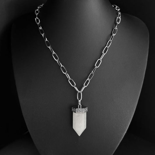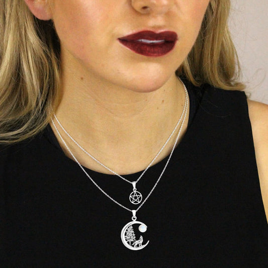 Howl at The Moon Silver Moonstone Forest Wolf Pendant