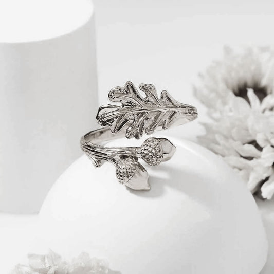 Sterling Silver Wrap Around Acorn Leaf Ring