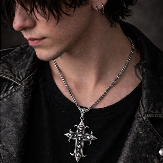 Large Skull Cross & Bale Necklace