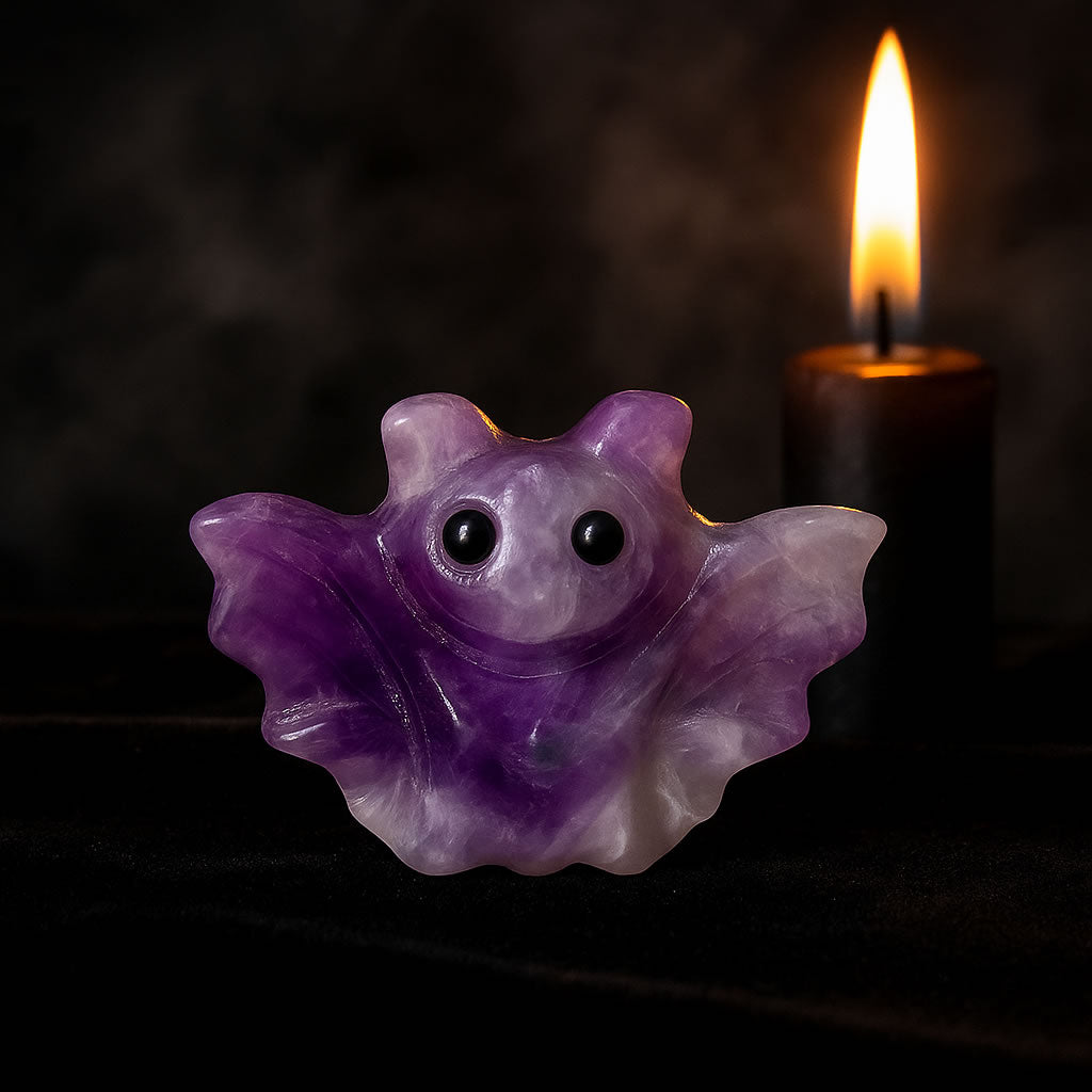 Hand-carved from natural amethyst, this gothic bat figure radiates both mystery and elegance. Symbolising intuition, protection, and transformation, the bat makes a powerful spiritual companion while amethyst brings calming energy and balance.