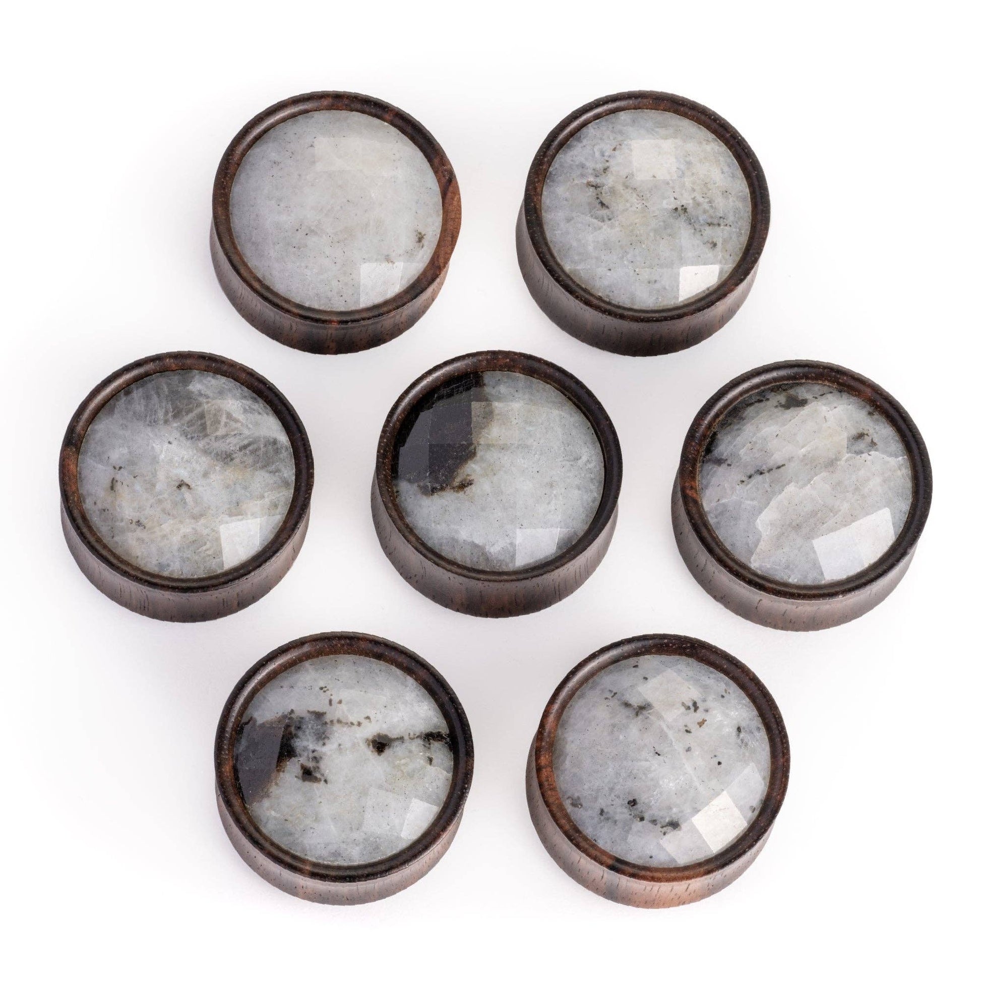 Hand-made Labradorite stone inlay with Ebony wood. These beauties are made to perfection and will make a standout piece in your plug collection. Delicately hand-carved to the highest quality. All our plugs are tested and pass through strict quality control to ensure they're of the highest standard. Sold individually.